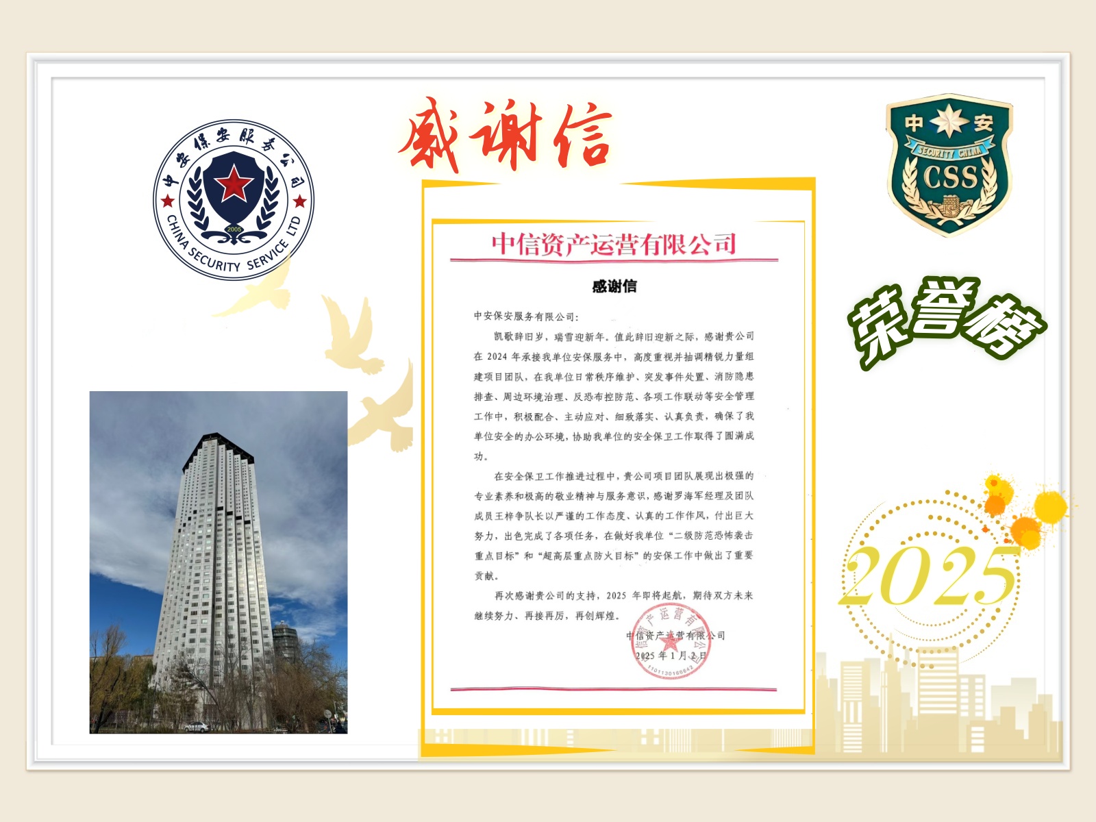中信京城大厦表扬信